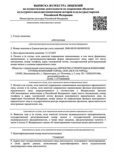 лицензировано: СРО, Минкультуры, все необходимые разрешения